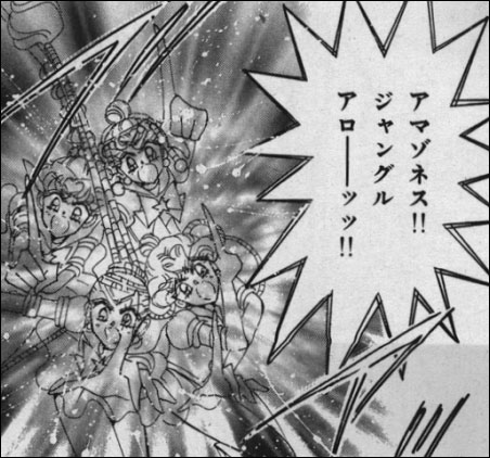 c. Amazones!! Jungle Arrow!! (That is to say, Amazons!! Jungle Arrow!!)