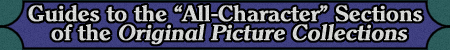 These guides to the “All-Character” sections show lists of the names of the characters. The names are written in the Japanese script and in Roman letters. The guides also include scans of the “All-Character” sections. Those scans came from the Web site Manga Style. Manga Style also offers translations of some of the Original Picture Collections.