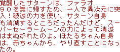 The dictionary section of the Bish jo Senshi S r M n S Nakayoshi Anime Album II (page) explains what Sailor Saturn does when she goes to attack Master Pharaoh 90: