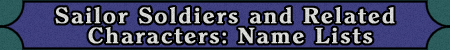 We get to know about many sailor soldiers in the various continuities of the Bish jo Senshi S r M n series! In these lists, the names of the sailor soldiers and related characters are written in Roman letters and in the Japanese script. One section shows the names of the groups that the series mentions. Another section shows some of the common misnomers and fan-created names.