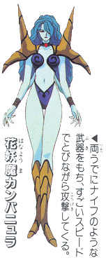 Campanula is the flying flower monster that Sailor Moon and the other sailor soldiers confront when they fly above the surface of Fiore’s asteroid. She has sharp blades attached to her body to attack her enemies. The heroines perform their Sailor Planet Power maneuver to destroy Campanula.