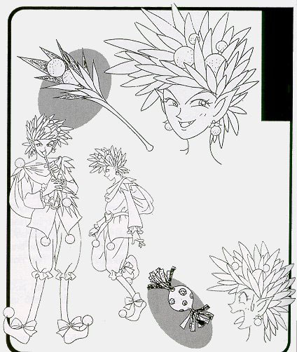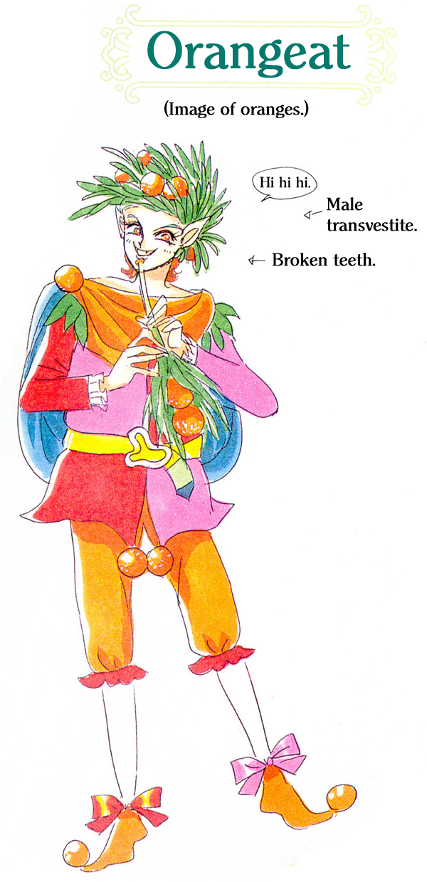 sei, which means cuckoo fairy. In the Materials Collection, Ms. Takeuchi stated that Orangeat is a male transvestite who has broken teeth.
