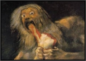 The image on the right shows artist Francisco Goya's idea of Cronus' heinous act of