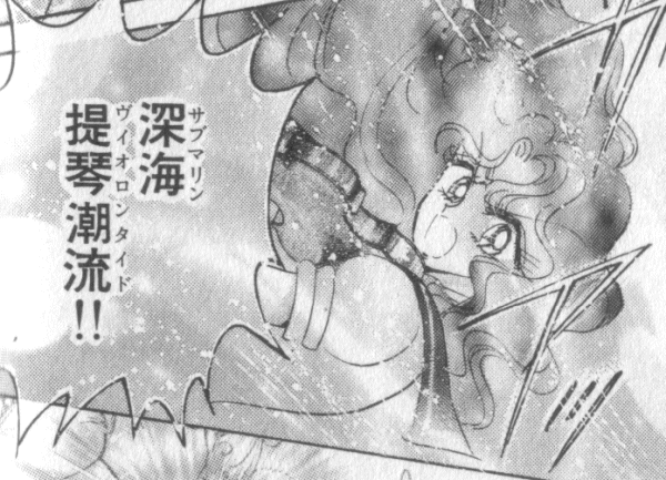 The "?????" ("Submarine") and "???" ("Tide") parts are easy to figure out, but what about the "?????" part? It certainly isn't the English word "Violin" because that word is regularly approximated by the katakana-character combinations "?????" and "??????." Lest you should accuse me of not verifying my information by providing multiple sources, I have more than one source: