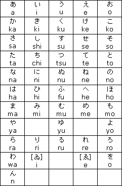 on). All the basic sounds of the kana table except for