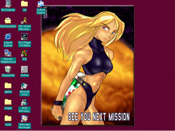 Look who is on my desktop! It is the lovely and powerful Samus Aran from the Metroid video game series! Ruben de Vela drew the image.
