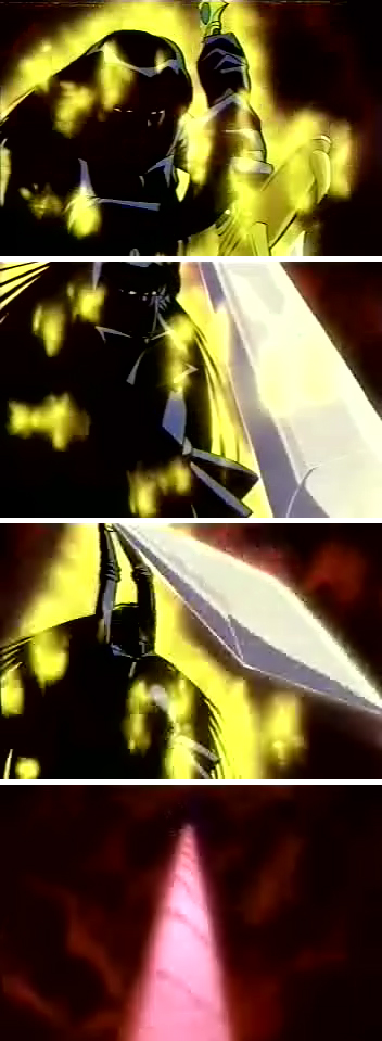That idea came about from a flashback that we see in episode 194 when Kaky tells the other characters about the story of the Sailor Wars. As she narrates the story, the flashback shows the legendary sailor soldier. (The flashback also appears in episode 199. During that flashback in episode 199, we can also hear Kaky ’s voice.) We see the sailor soldier holding a sword and sealing Chaos. Notice that the sailor soldier in that flashback has long hair, but she does not have the pointed piece that appears on the helmet part of Sailor Galaxia`s metal armor. That sailor soldier also has a pleated skirt that resembles the ones that Sailor Moon and the other sailor soldiers from our solar system wear. It is crucial to understand that the first-time viewers of episode 194 and the sailor soldiers of our solar system are not supposed to know the identity of the legendary sailor soldier.